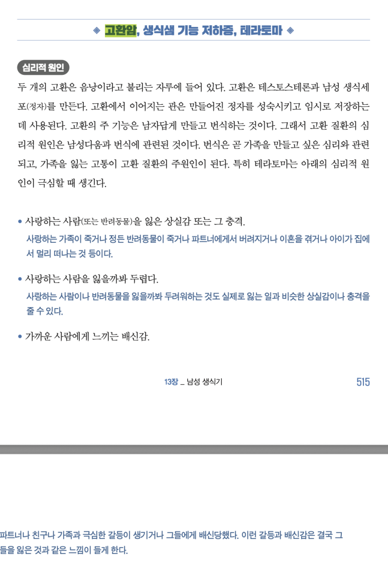 그런데 그는 왜 25살의 젊은 나이에 고환암에 걸렸을까? <치유의 혁명, 심신의학 EFT> 515쪽을 한 번 보자.