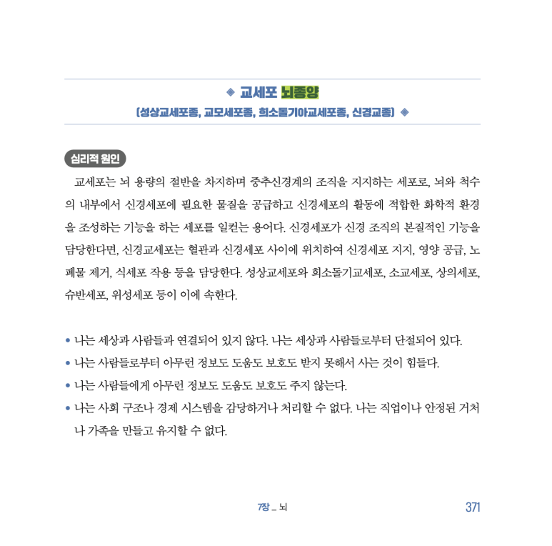 <치유의 혁명, 심신의학 EFT> 371쪽에는 교세포 뇌종양의 원인이 나온다.