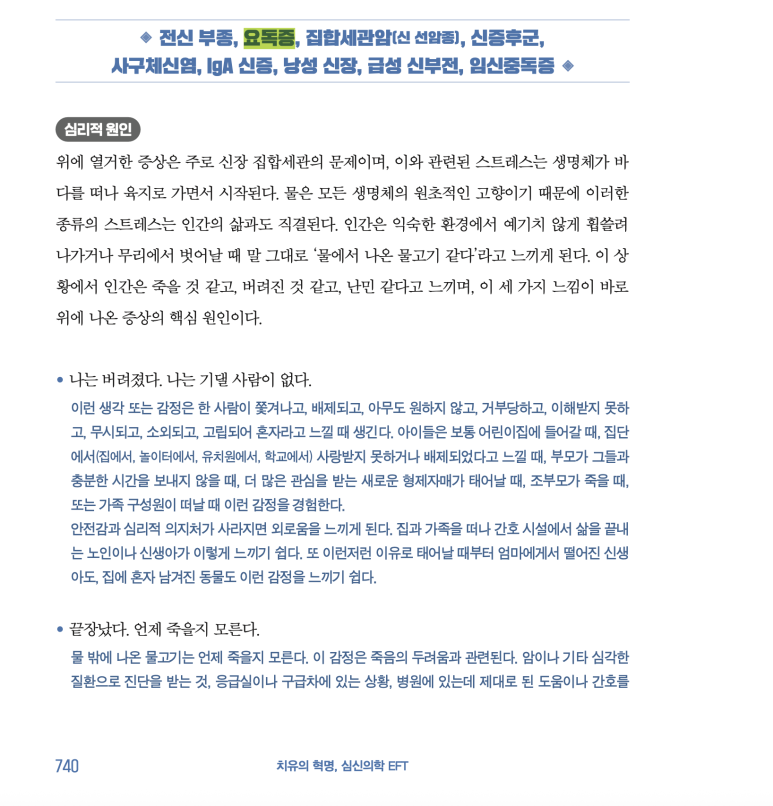 그래서 <치유의 혁명, 심신의학 EFT>에서 요독증을 치유하는 확언은 다음과 같으니 하느님의 전지전능한 사랑에 나를 내맡기는 것이다.