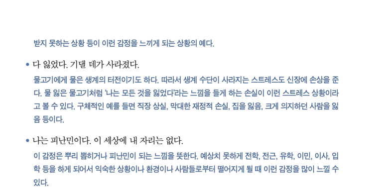 학 등을 하게 되어서 익숙한 상황이나 환경이나 사람들로부터 떨어지게 될 때 이런 감정을 많이 느낄 수